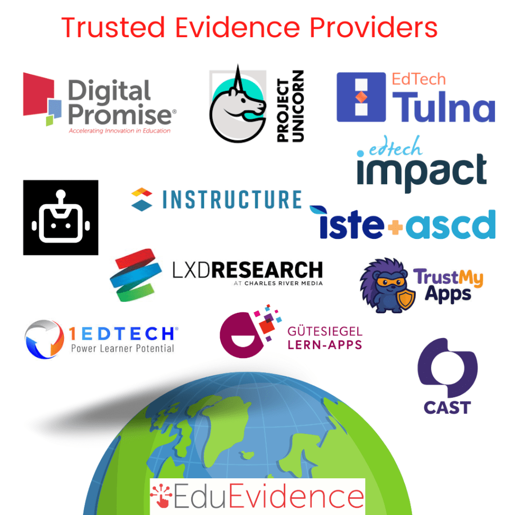 EduEvidence badges reach virtually every K-12 school in the US through our partnership with the EdTech Index and Clever, Classlink, SchoolDay and Lightspeed. They also reach schools through similar providers in Europe (eg Skolon), Asia (Asian EdTech Marketplace), Latin America and Africa.